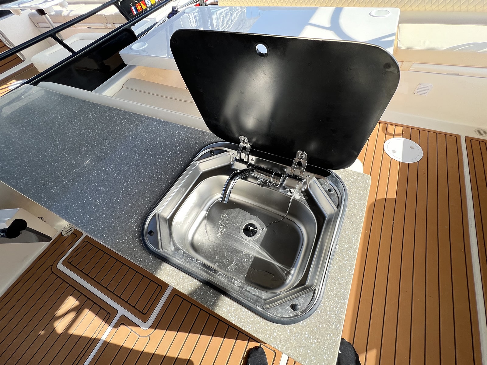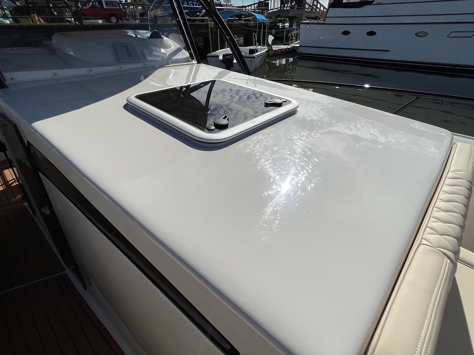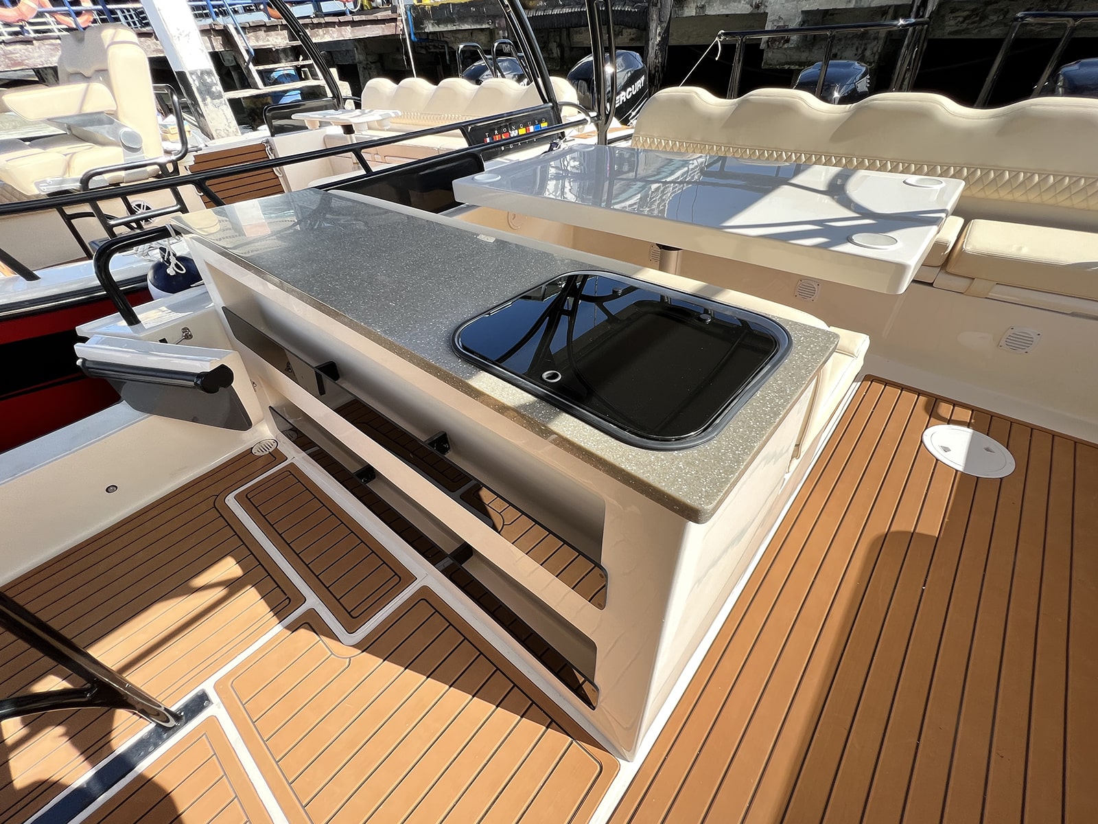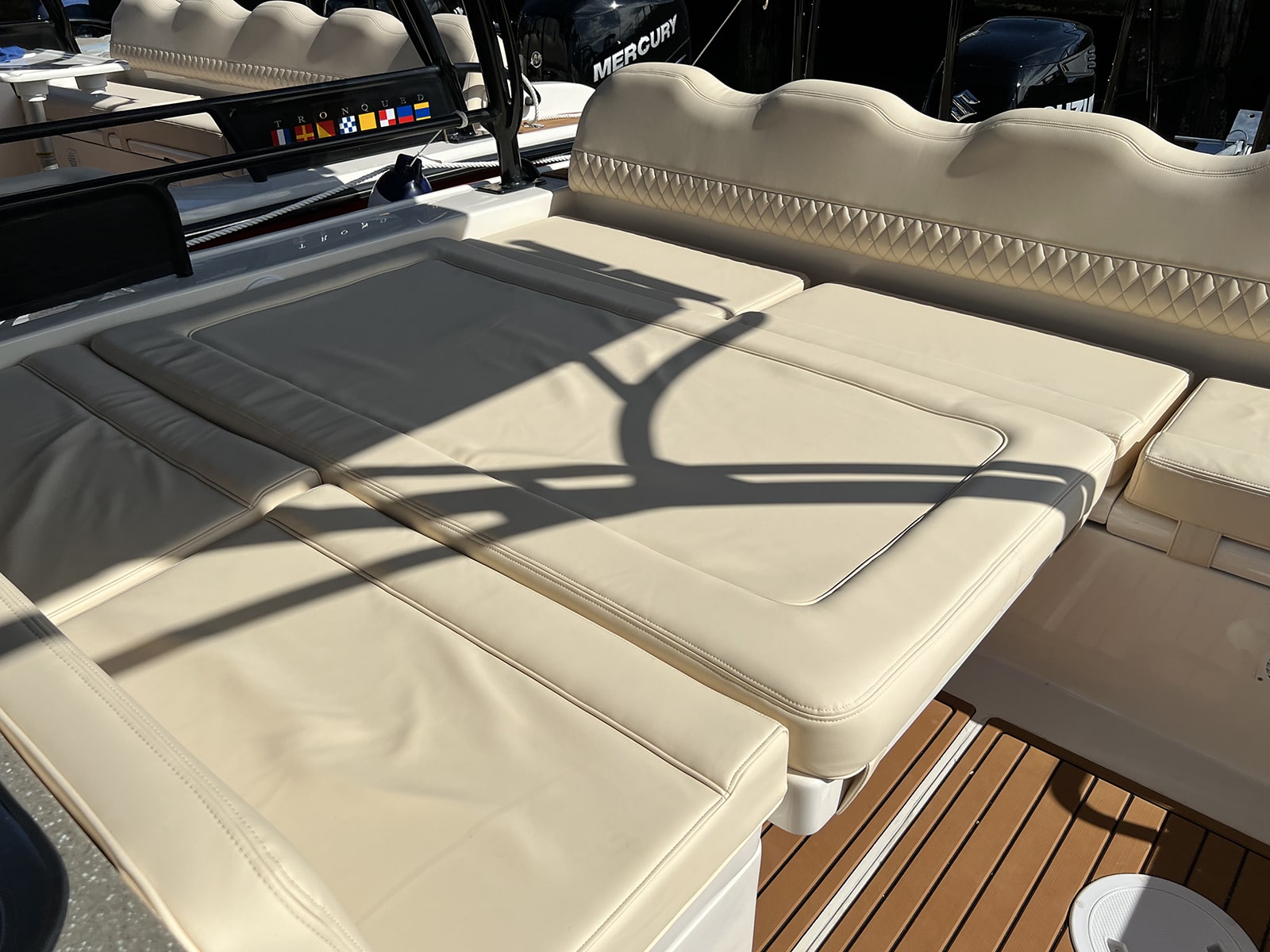 The comfort and stability one can get from this boat’s tunnel hull design and very wide beam of ten feet is unmatched by any boat of it’s class. This boat can be custom-built to your length of choice from 33 to 40 feet. With just twin 225’s this boat can reach a top speed of 48 mph and comfortably cruise at 40mph.